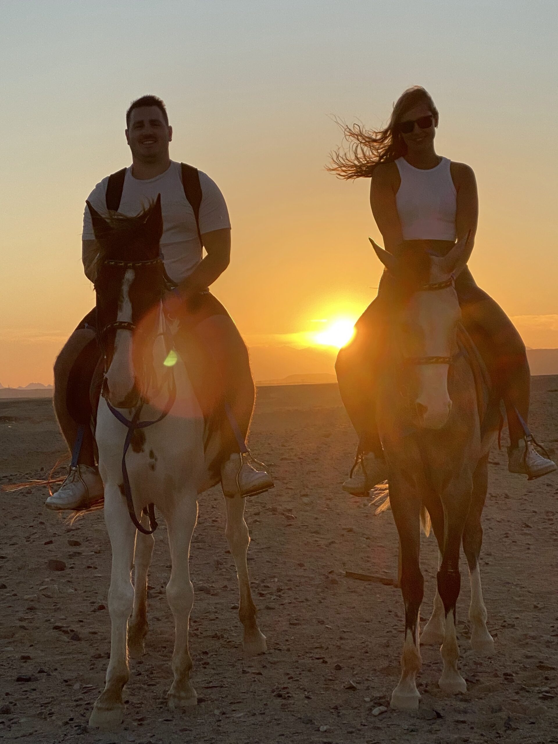 Ride through golden desert dunes, feel the sea breeze along the beach, and for the ultimate thrill, swim with your horse in the warm Red Sea waters.